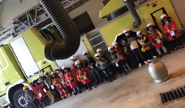 وكان في استقبال الأطفال مجموعة من الإطفائيين الذين بدأوا اللقاء بتعريف الأطفال برقم الدفاع المدني متحدثين عن بعض المعلومات