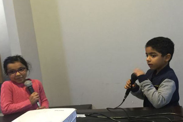 وبينت للأطفال مواصفات الملقي البارع بالتطبيق المباشر، وهو الذي يستعد جيدا ولديه ثقة بالنفس ويراعي الحضور ويستمع لهم، بالإضافة إلى التحكم بنبرات الصوت أثناء الإلقاء والتحكم بلغة الجسد ونظرات العين وتوزيعها على الجمهور.