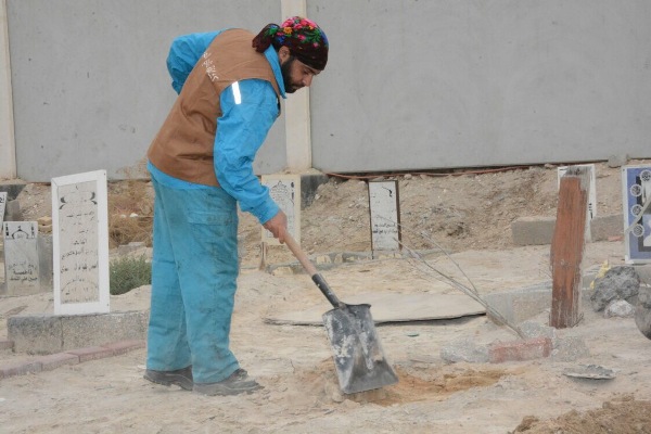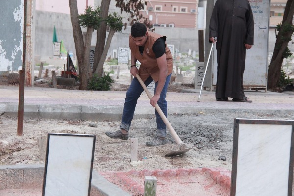 ووفرت جمعية العمران الخيرية أدوات تعديل القبور للمتطوعين.