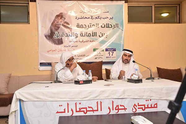 الشاعر عدنان العوامي في حوار الحضاراتقال ذلك خلال أمسية أقامها منتدى حوار الحضارات بمحافظة القطيف مساء الجمعة تحت عنوان «الرحلات المترجمة بين الأمانة والتحقيق».