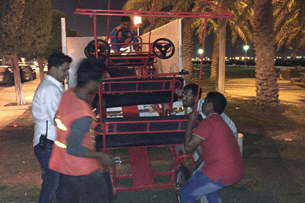الحملة الرقابية التي تعتبر الثانية من نوعها خلال اسبوعين تأتي على الباعة الجائلين وملاك الألعاب الهوائية غير النظامية التي تم وضعها بطريقة غير نظامية في كل من الواجهة البحرية بالقطيف وسيهات.
