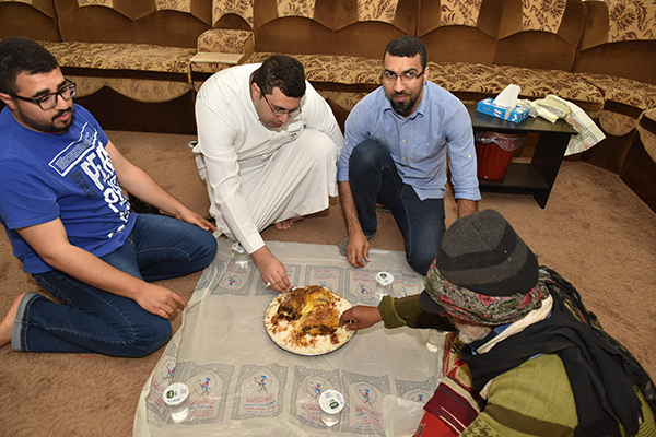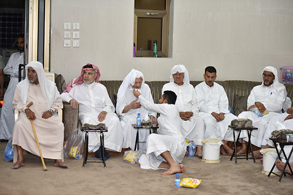 واعتلت أصوات الاهازيج والأناشيد على المساجد والمضايف والتي نصبت في كل مكان لتوزيع المشروبات والأطعمة.