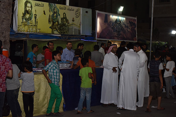 ووزعت المضائف أصناف الأطعمة والحلويات والمشروبات الباردة، والتي شارك فيها الأطفال الصغار تعبيراً عن حبهم للإمام الحسين