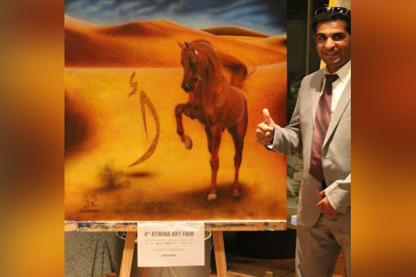 التشكيلي الرضي يُمثل العروبة بالخيل ورمال الصحراء في اليونان
