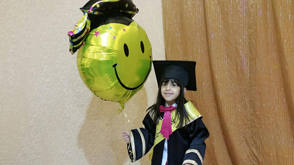 ووصفت مشاعرها بالفرح عندما أنشدت مع الأطفال في الحفل مشيرة أنها تشعر أيضا بالسعادة لأنها ستذهب إلى المدرسة.