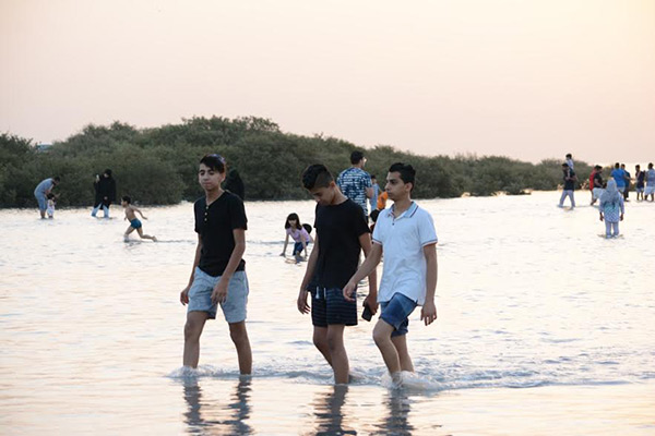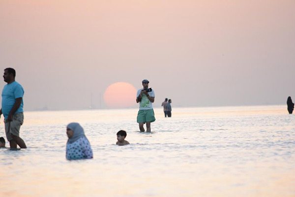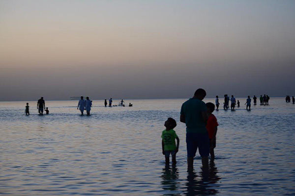 وتبدأ الاعداد بالتقاطر على الموقع قبل ساعة تقريبا من موعد طلوع الشمس وساعتين من غروبها، حيث يتحول الموقع الى منطقة تغص باعداد كبيرة من الاطفال والنساء والرجال، بهدف الاستمتاع جزء من الوقت بجوار البحر.