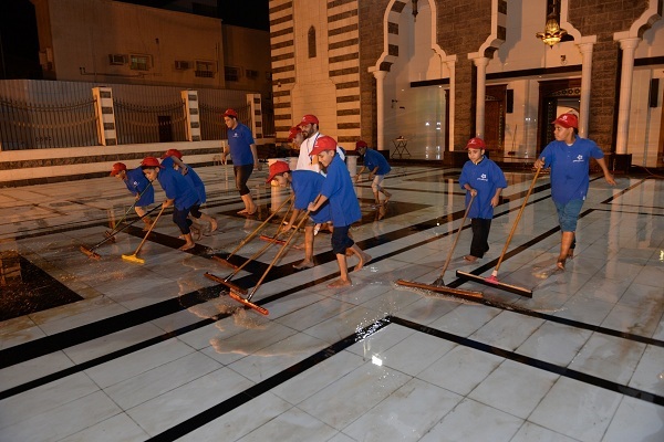 بالصور.. «تميز الجبيل» التطوعي ينظف جامع الإمام الهادي