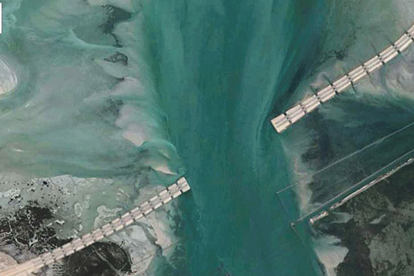 وأضاف يبدأ ارتفاع أعمدة الجسر الأولى بمترين ثم يرتفع إلى آخر فتحة ليكون الارتفاع بحوالي 6 أمتار و15 سنتمترا عن أعلى مد وجزر الماء إلى أن يصل إلى أعلى ارتفاع في الجسر.