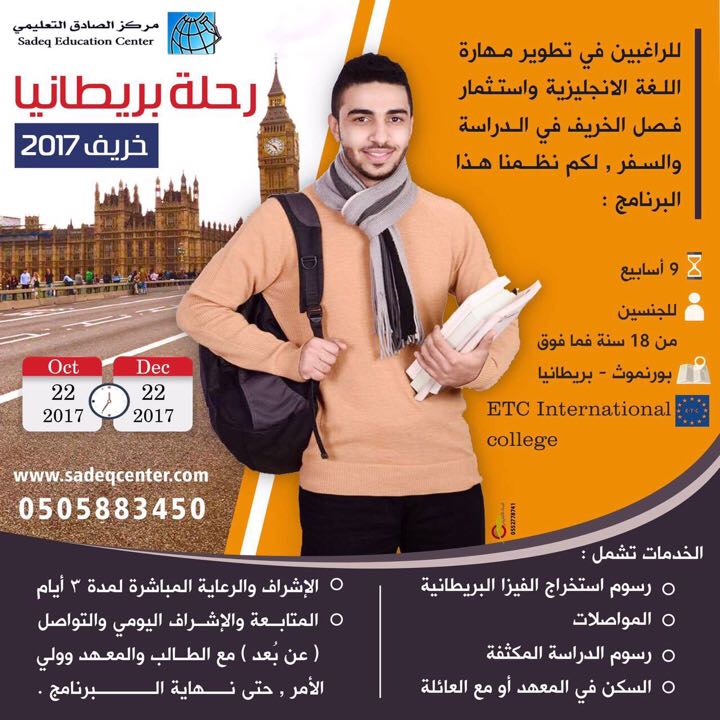 استثمر الخريف بتطوير لغتك الإنجليزية في بريطانيا مع مركز الصادق التعليمي
