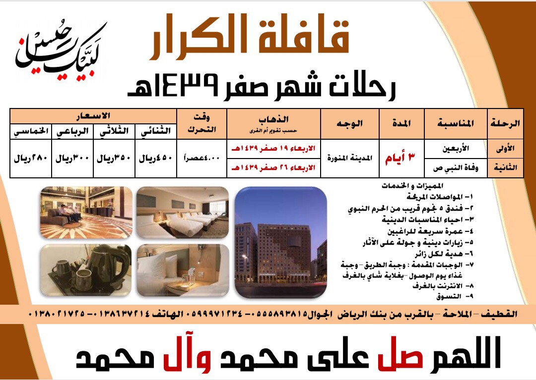 تعلن قافلة الكرار عن استمرار التسجيل لرحلات شهر صفر