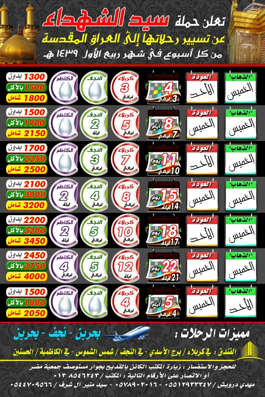 رحلات شهر ربيع الثاني وإجازة النصف للعراق والمدينة مع حملة سيد الشهداء