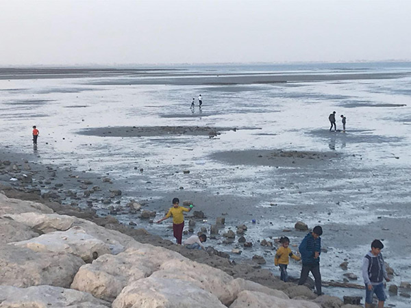 ظاهرة ”الجزر“ تستقطب الأسر والمتنزهين في كورنيش الغدير