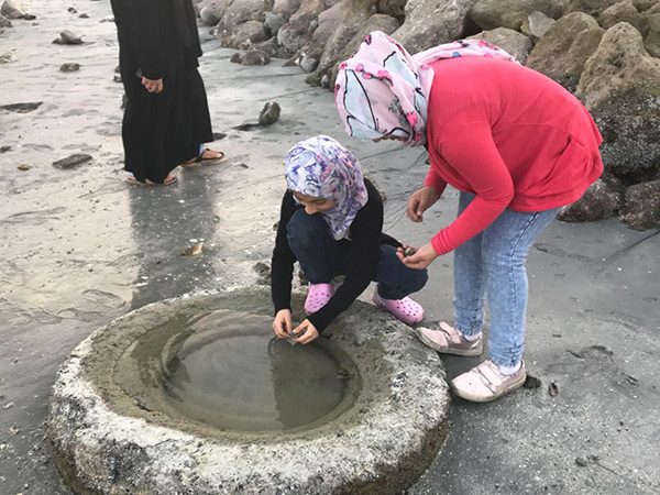 وقالت سيدة رفضت ذكر اسمها: ”احببت ان استكشف المكان، بعد رؤية الكثيرين ينزلون الى ارض الشاطئ، لكن رجل حرس الامور امرني بالعودة بعد ان رفعت حجرا ورايت كائنا بحريا يشبه العنكبوت فصرخت“.