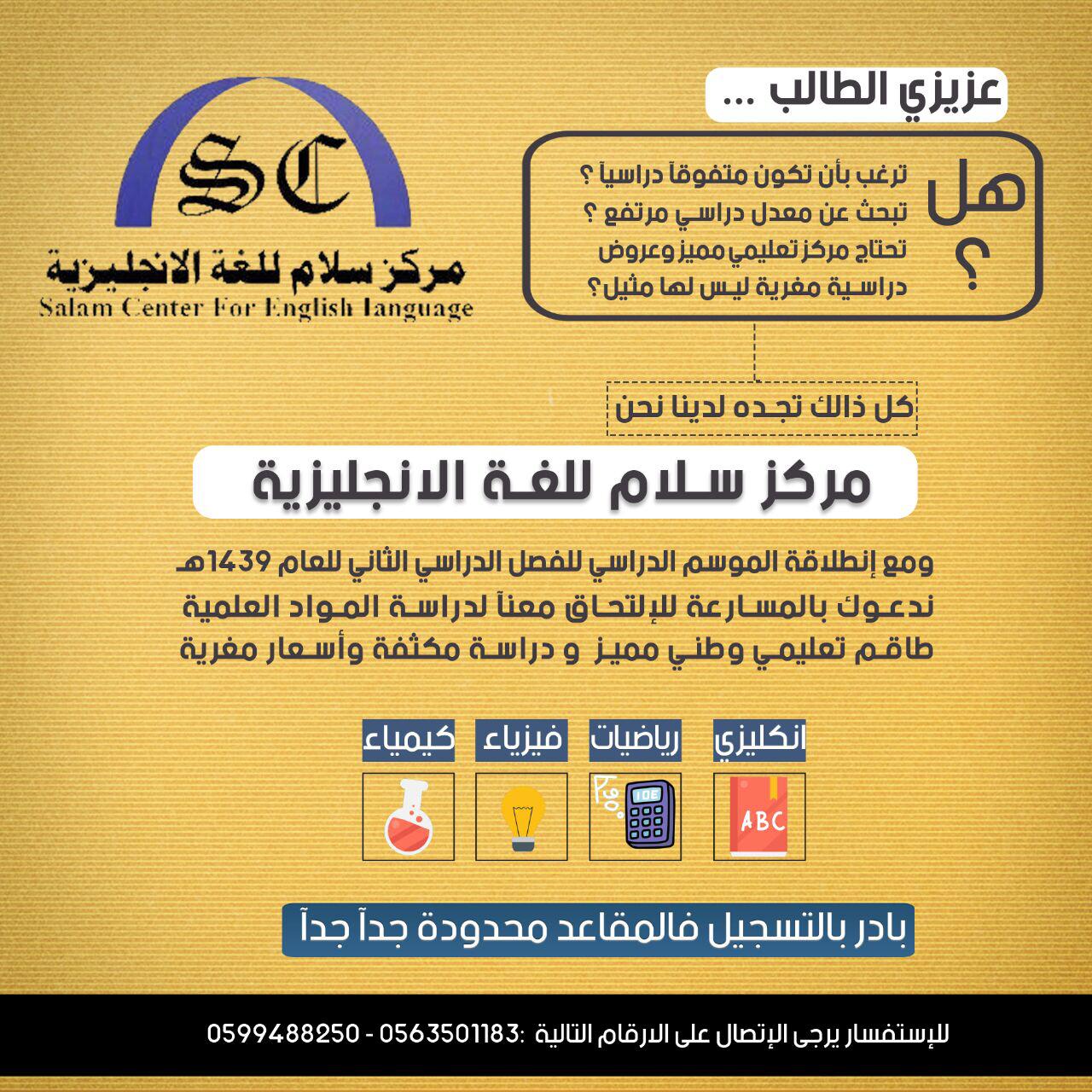 بادر بالتسجيل في مركز سلام للغة الانجليزية فالمقاعد محدودة