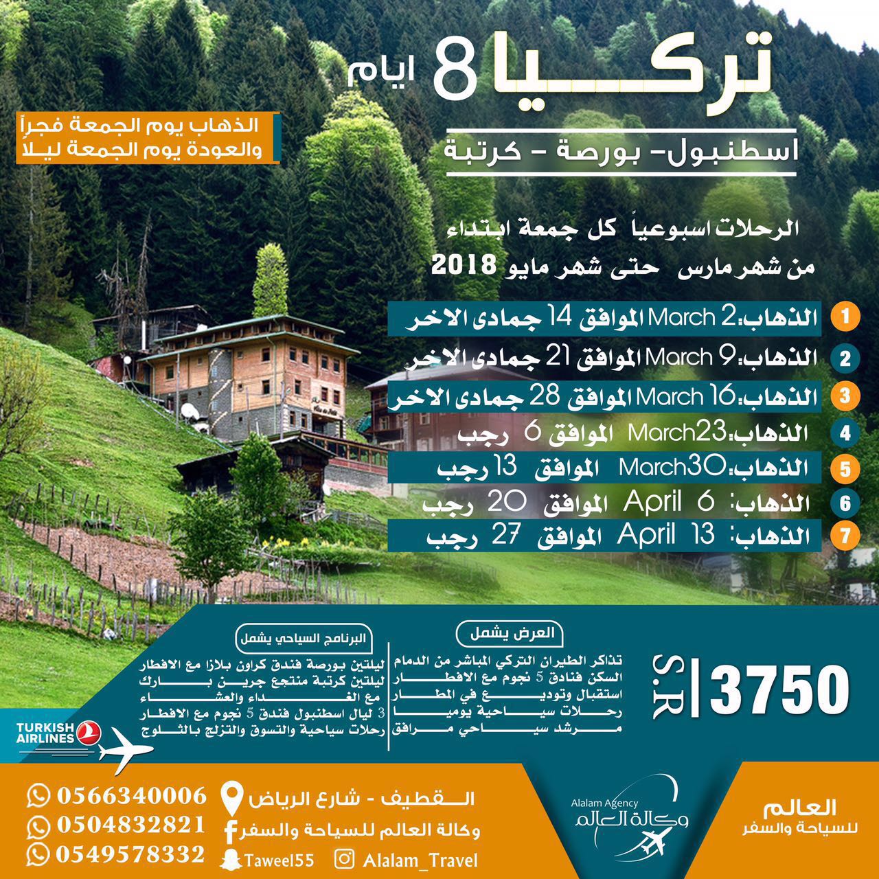📍تبدأ الرحلات اسبوعيا كل جمعة ابتداء من 2 مارس 2018 حتى شهر مايو 2018
