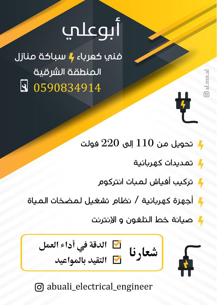 أبو علي .. فني كهرباء + سباكة للمنازل