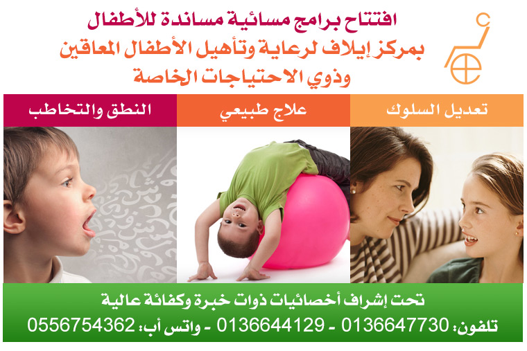 يسر مركز إيلاف لرعاية وتأهيل الأطفال المعاقين وذوي الاحتياجات الخاصة أن يعلن عن افتتاح برامج مسائية مساندة للأطفال وتتضمن: