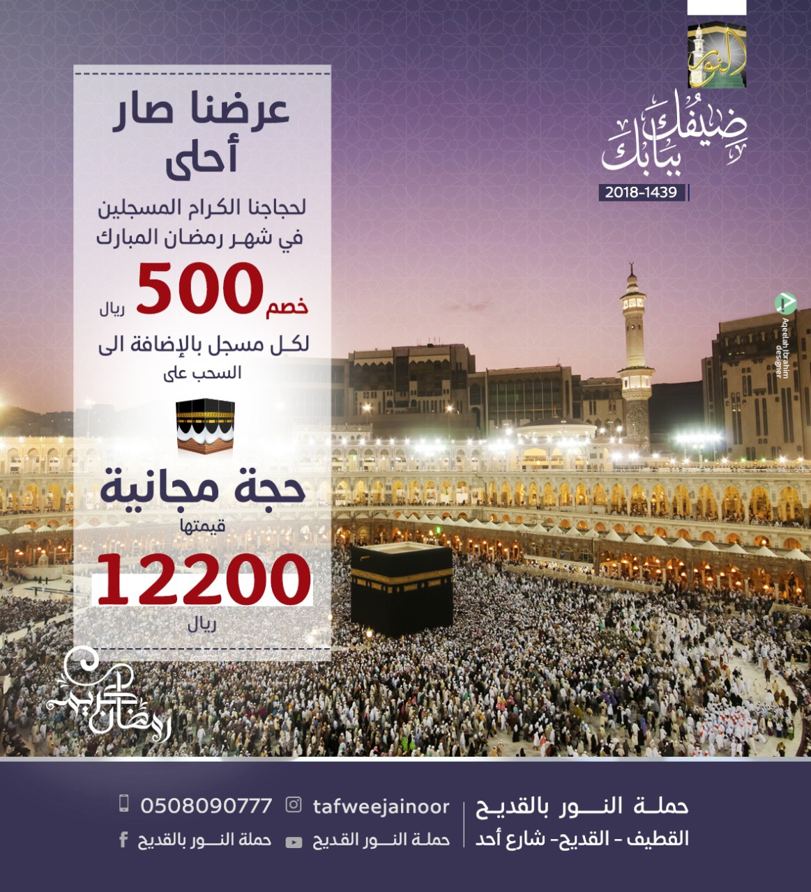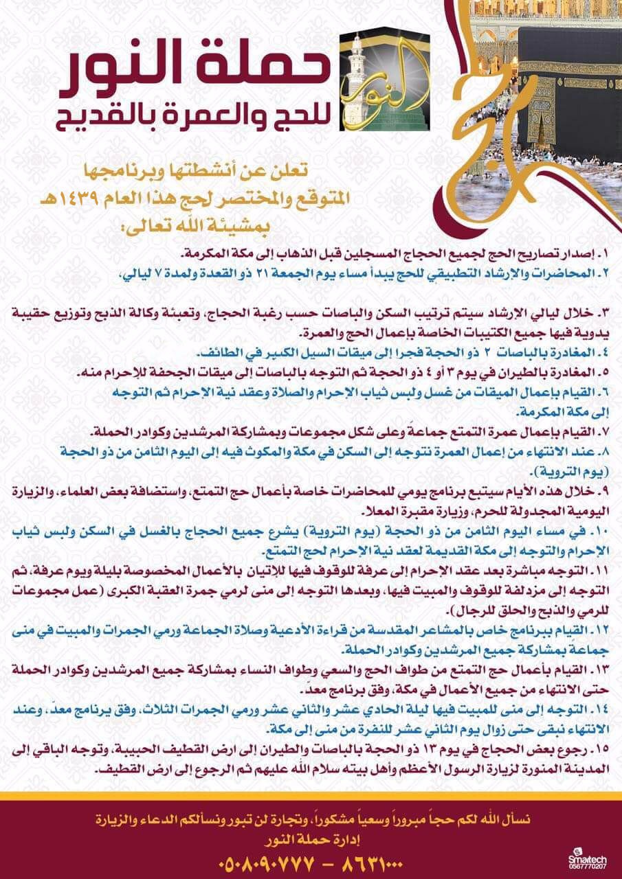 خصم 500 ريال + الدخول في السحب على الحجة المجانية من حملة النور للحج بالقديح