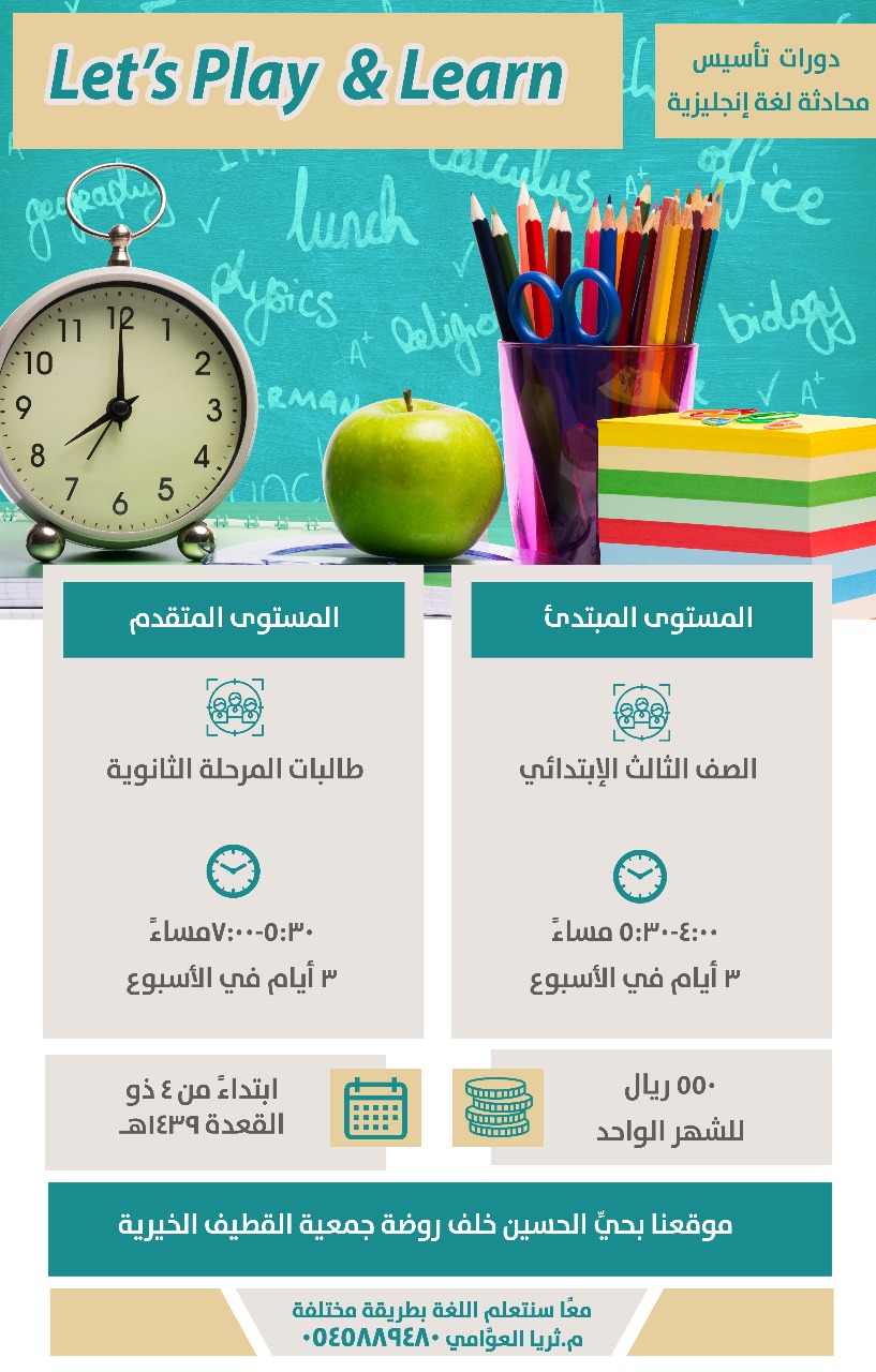 بدأ التسجيل لدورة اللغة الانجليزية لشهر ذو القعدة في ”Let's play and learn“
