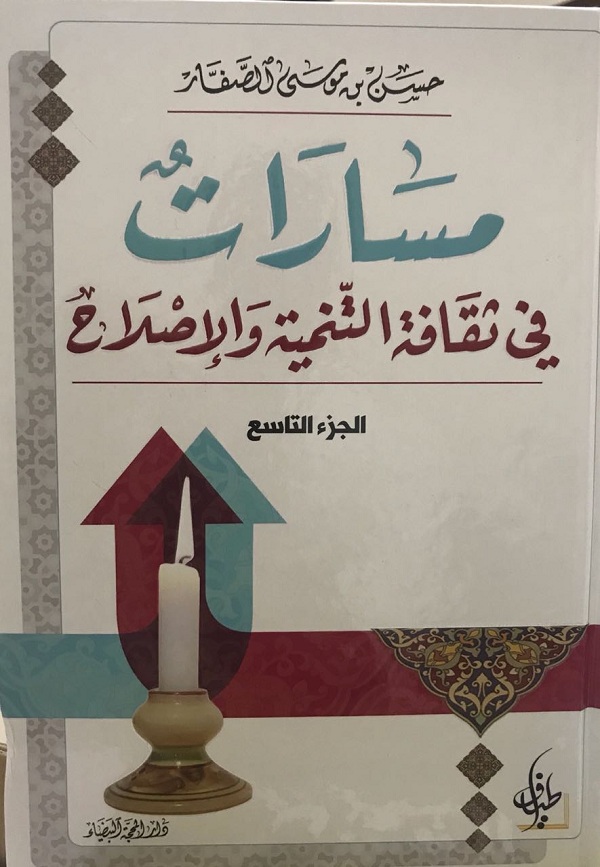 صدر الجزء التاسع من سلسلة «مسارات في ثقافة التنمية والإصلاح عن دار المحجة البيضاء وأطياف للنشر والتوزيع» للشيخ حسن الصفار، الذي يضم ما أنتجه من خطب «30 خطبة» وكتابات «14مقالا» خلال عام 1438 هـ ، بالإضافة إلى أخبار نشاطاته ومشاركاته، ونص لثلاث ندوات، وثلاثة حوارات، وهو كالأجزاء السابقة يمثل تجربة في مجال الدعوة والعمل الاجتماعي.