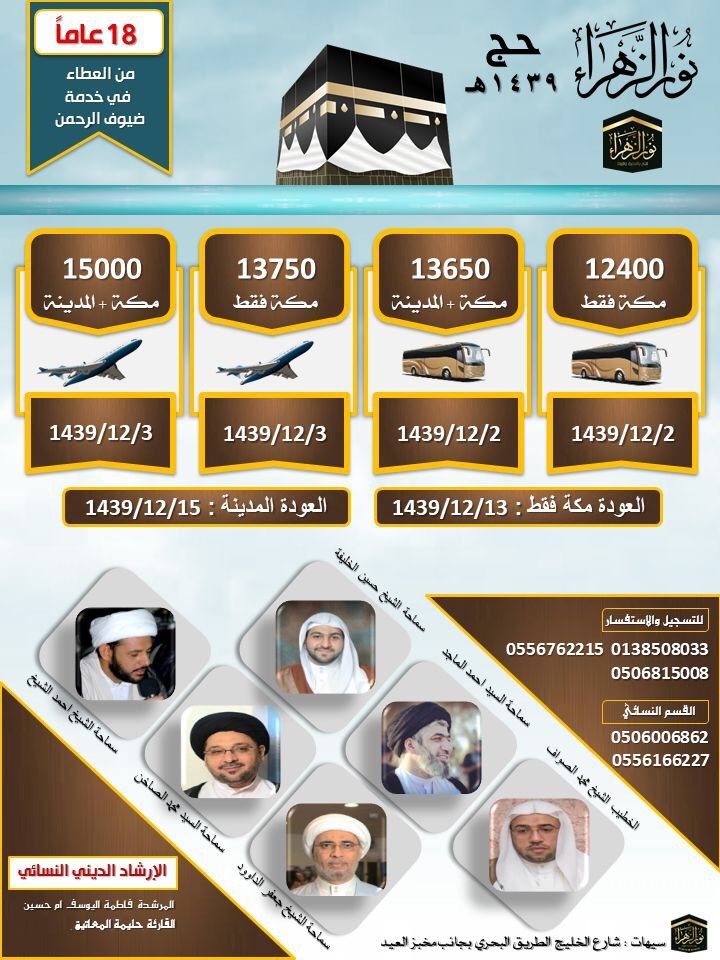 حملة ”نور الزهراء“ تعلن عن استمرار التسجيل لحج 1439 هـ