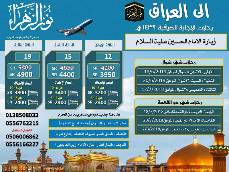 رحلات إجازة الصيف إلى العراق مع حملة ”نور الزهراء“