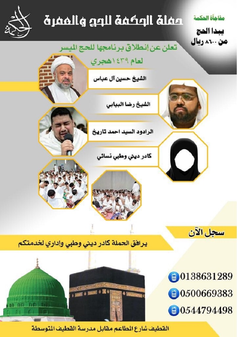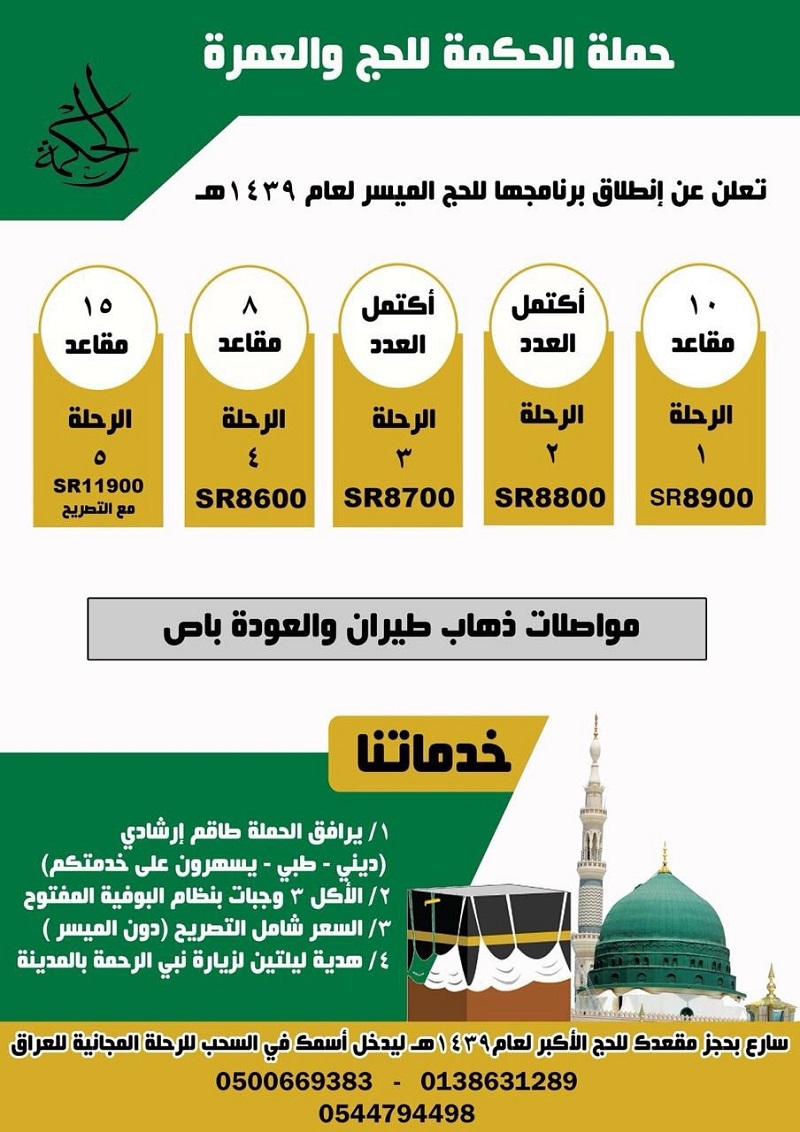 🔺تعلن عن إنطلاق رحلاتها الى الحج الأكبر الميسر لعام 1439 هـ  - 2018