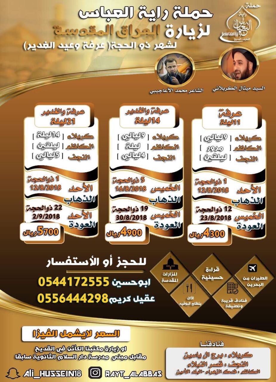 أقوى عروض ”حملة راية العباس“ لزيارة العراق المقدسة لشهر ذي الحجة «عرفة وعيد الغدير»