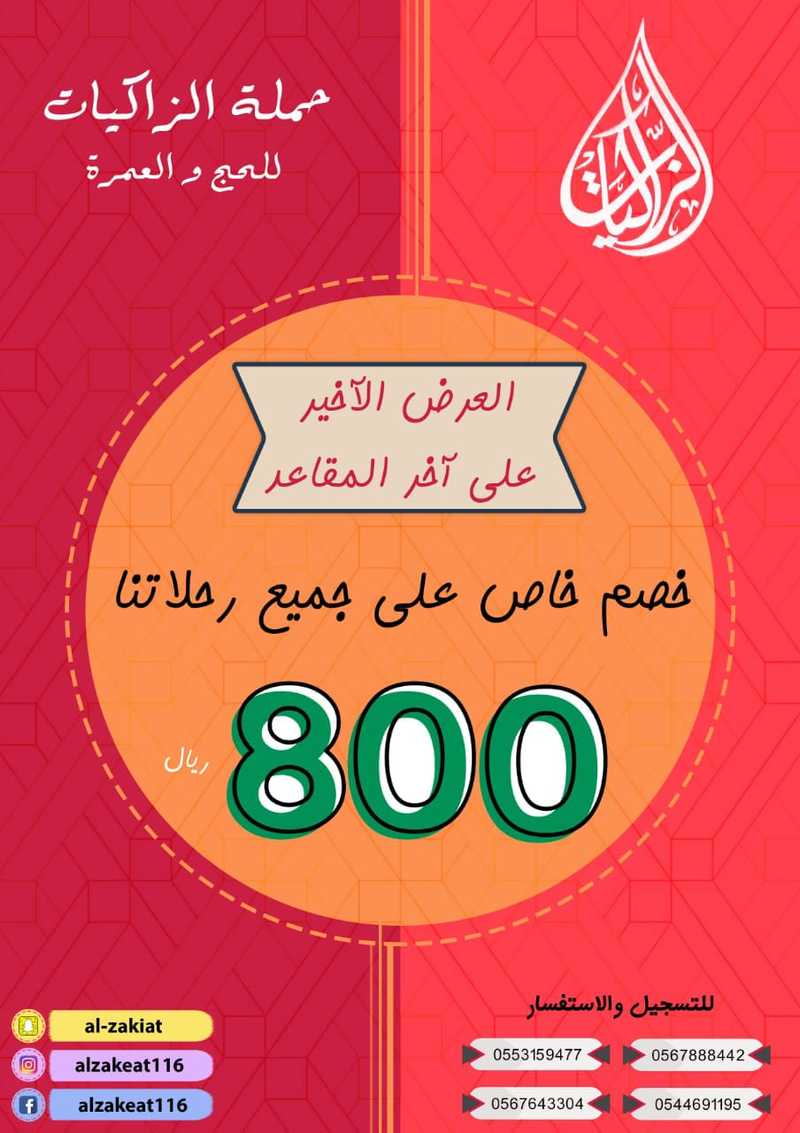 العرض الأخير على آخر المقاعد للحج مع حملة الزاكيات