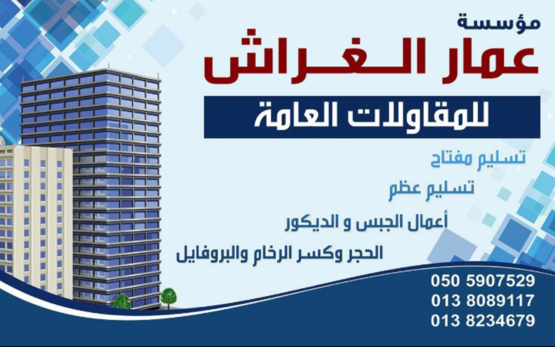 أفضل عروض الانشاء و التشطيب من مؤسسة عمار الغراش للمقاولات العامة