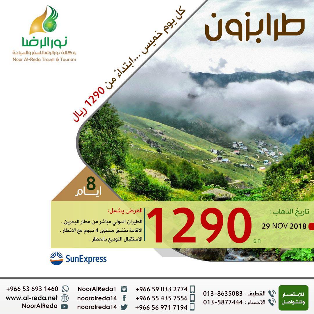 مع نور الرضا أقوى العروض إلى تركيا 1290 ريال انطاليا أو طرابزون
