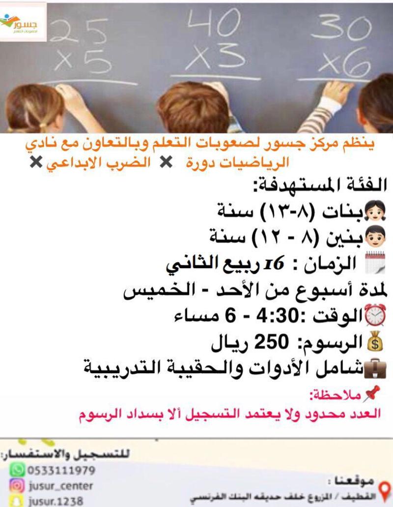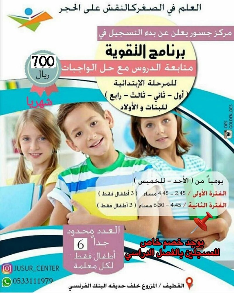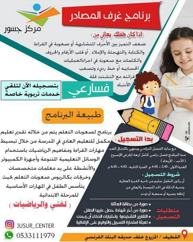 مازال التسجيل مستمر على المقاعد الأخيرة للفصل الدراسي الثاني في برنامجي ”صعوبات التعلم لمادتي لغتي والرياضيات“ والتقوية للمرحلة الابتدائية..