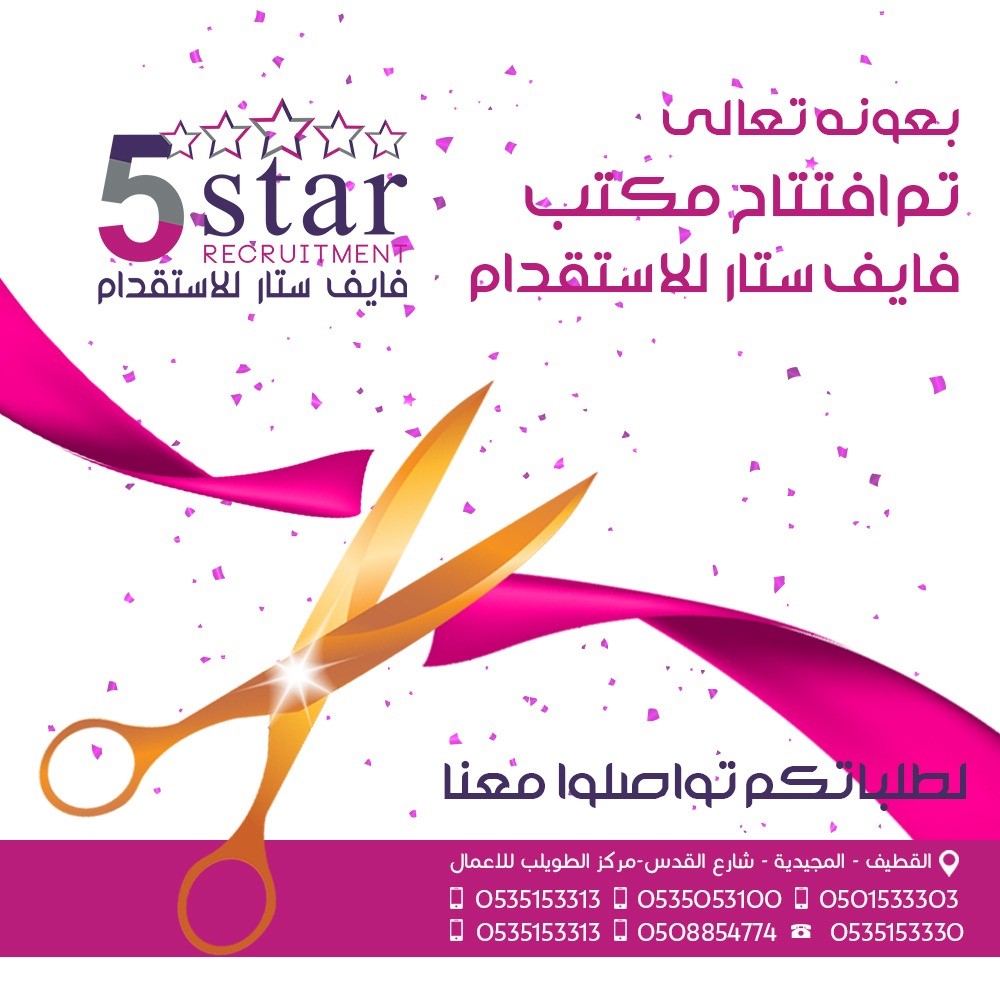 بعون الله تعالى تم إفتتاح مكتب فايف ستار للإستقدام..