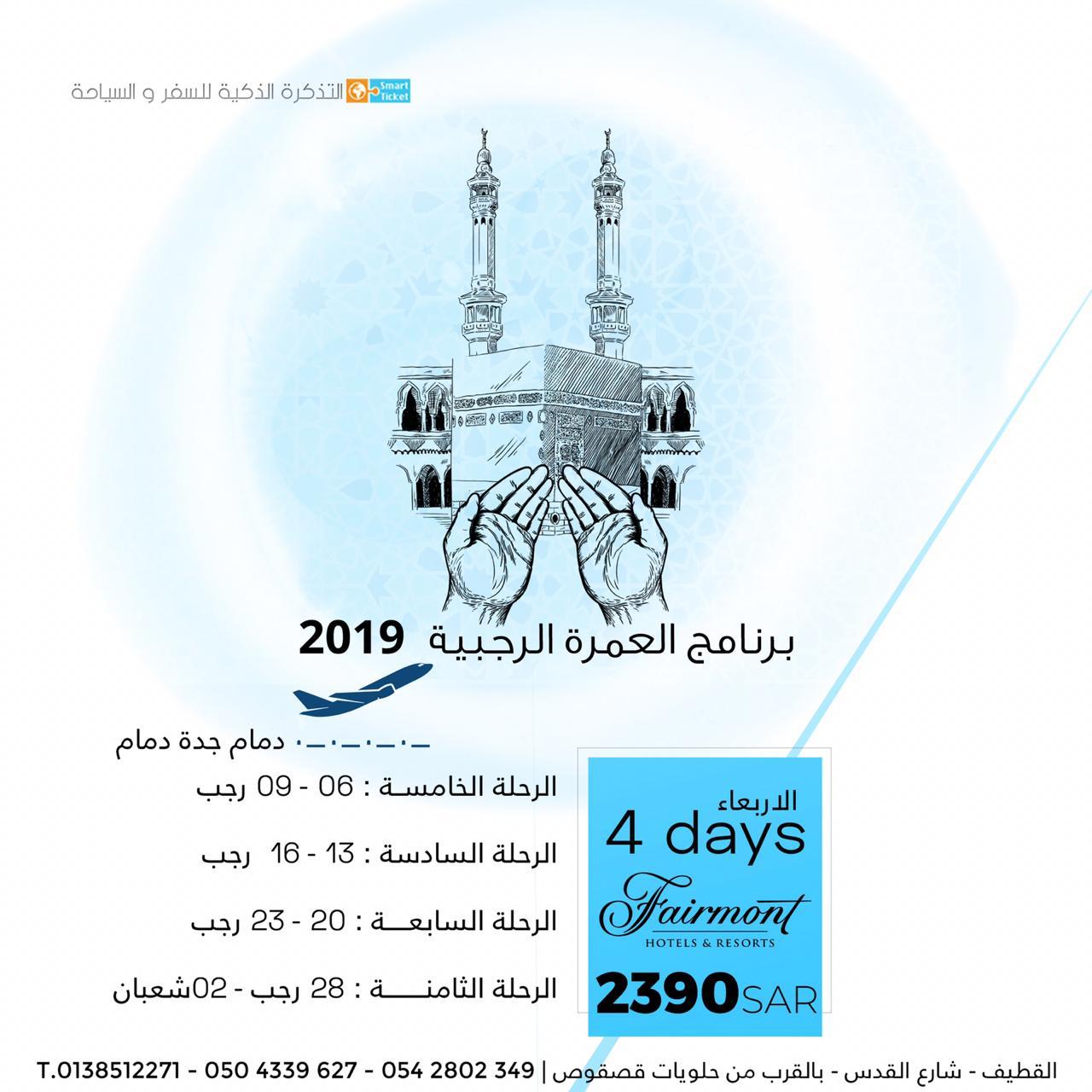 #00a6d4 ;">العمرة الرجبية | طيران مباشر - فندق ساعة مكة الفيرمونت بأقل الاسعار
