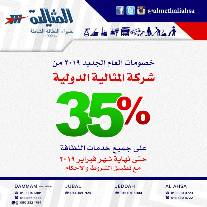 خصومات العام الجديد 2019 من شركة المثالية الدولية للنظافة الشاملة
