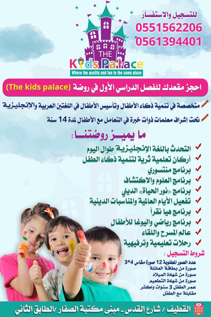 سارع بحجز مقعد لطفلك / طفلتك للسنة الدراسية الجديدة في روضة (The kids palace)