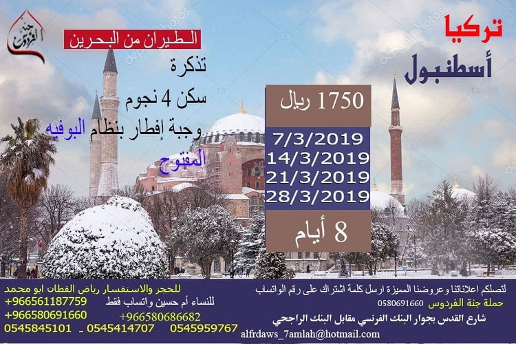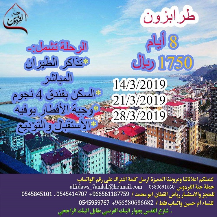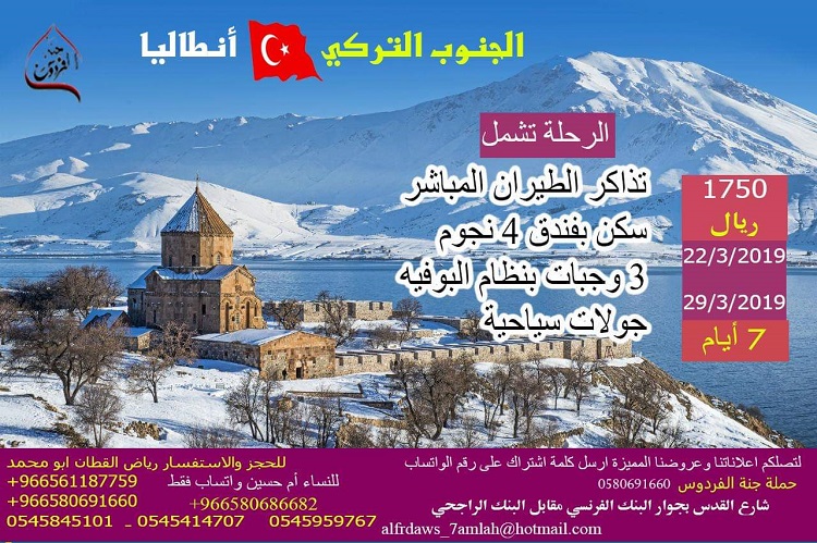 #cc0033 ;">حملة جنة الفردوس تعلن عن رحلاتها لمكة و المدينة و القراق و تركيا و الأحساء