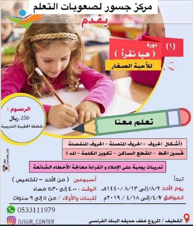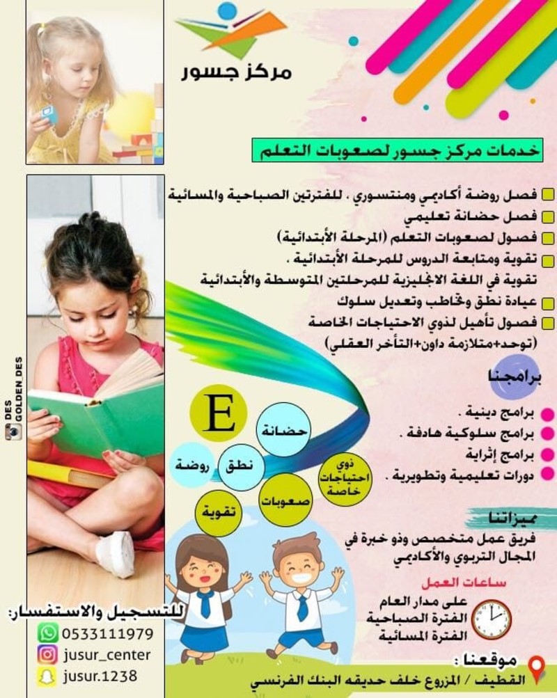 مركز جسور لصعوبات التعلم يقدم لكم حزمة من البرامج والدورات للكبار والصغار في شهر شعبان.. كونوا معنا