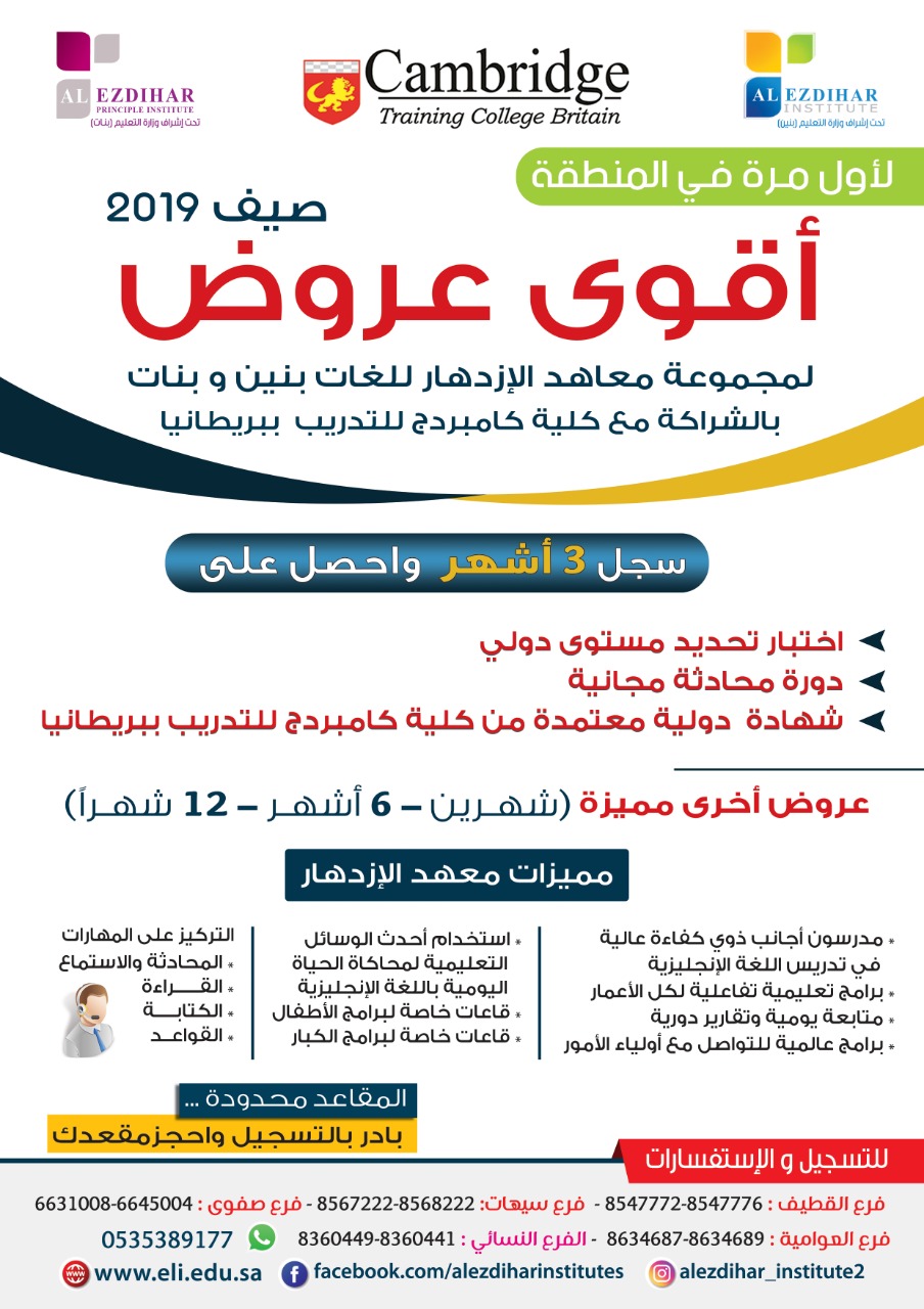 عروض خاصة وخصومات مميزة من مجموعة معاهد الإزدهار للغات والحاسب الآلي