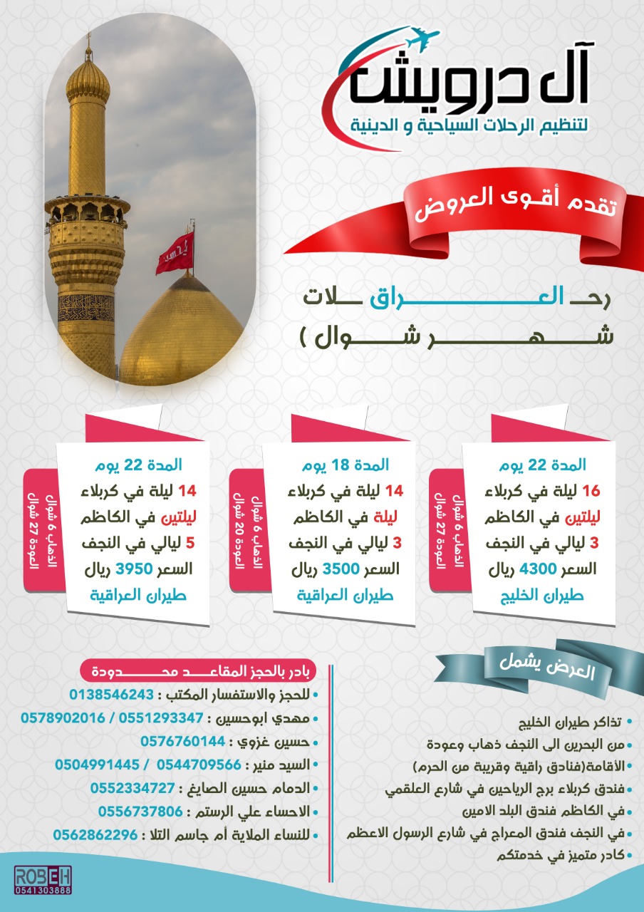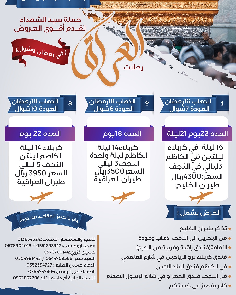 أقوى العروض مع حملة ”سيد الشهداء“ لرحلات العراق في شهر رمضان وشوال