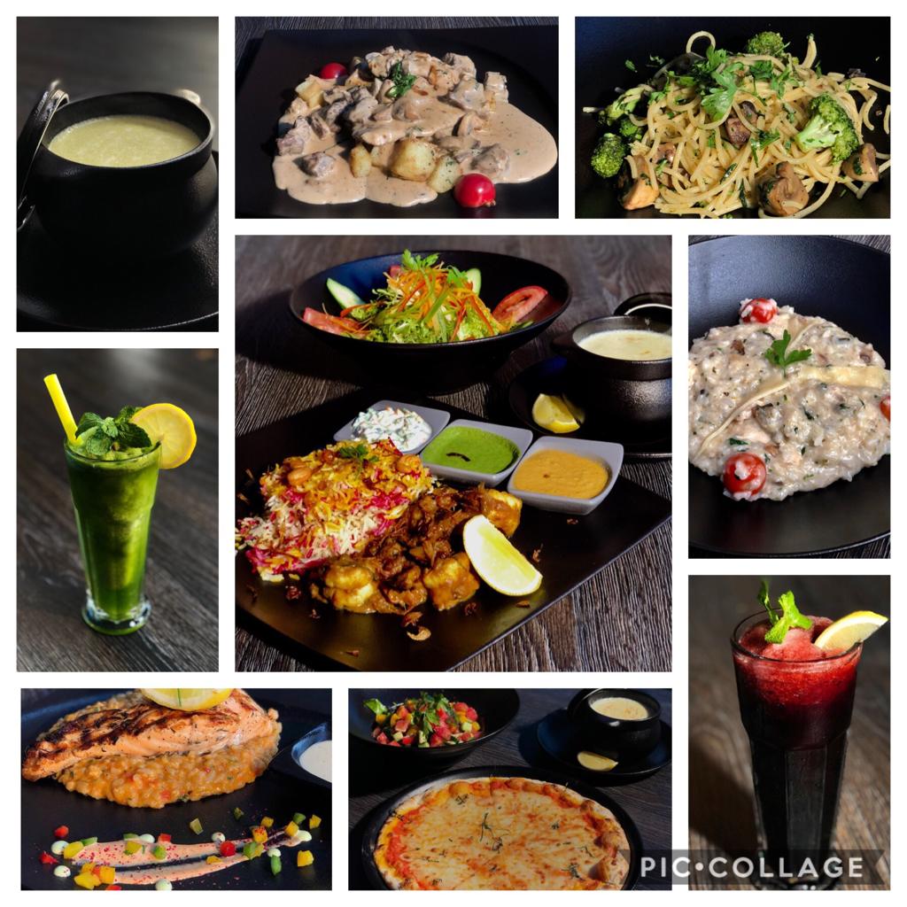 تحتوي على المقبلات والسلطات والوجبات الرئيسيّة والمشروبات الباردة والقهوة والحلى..