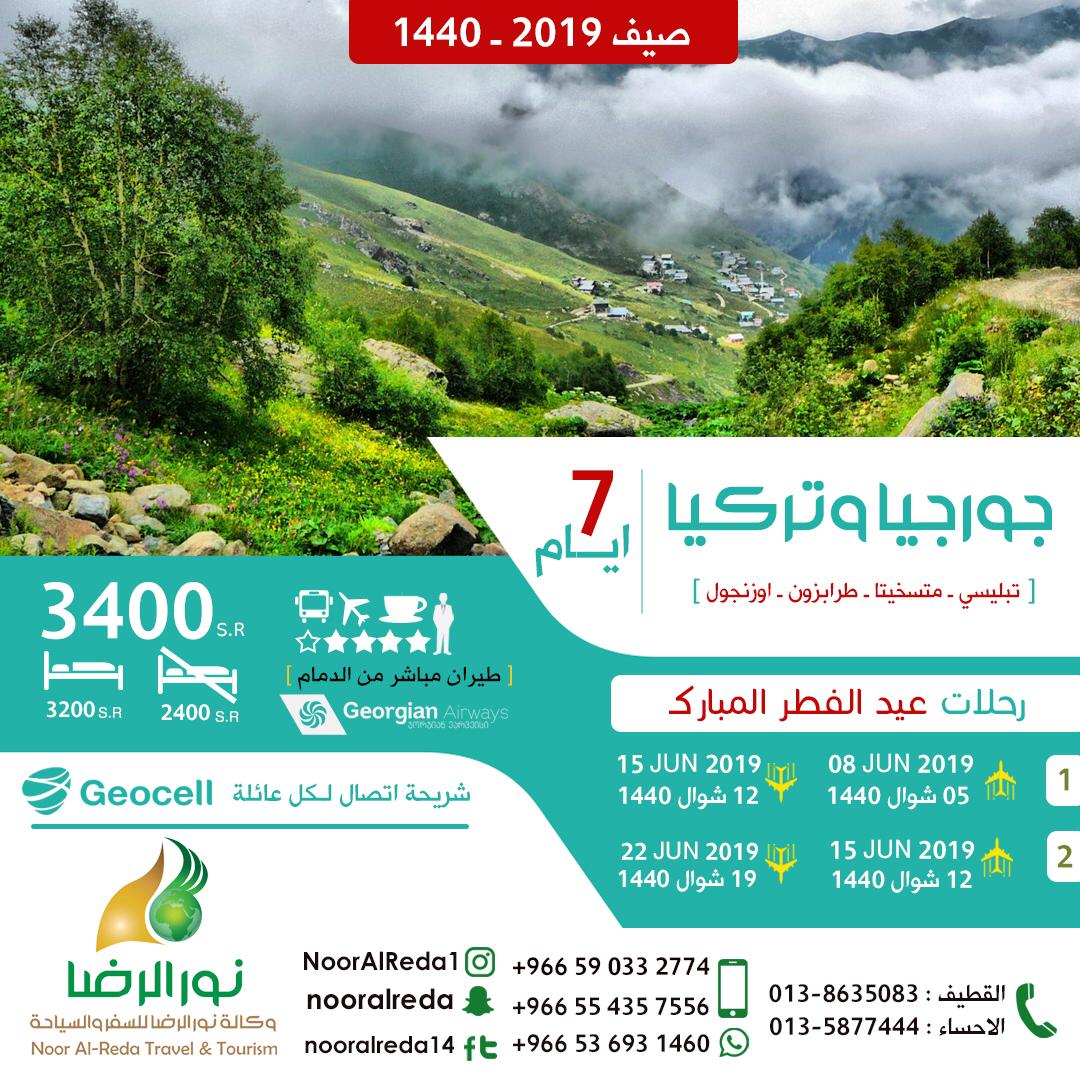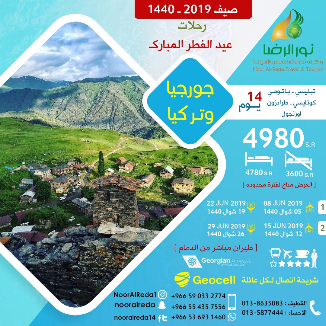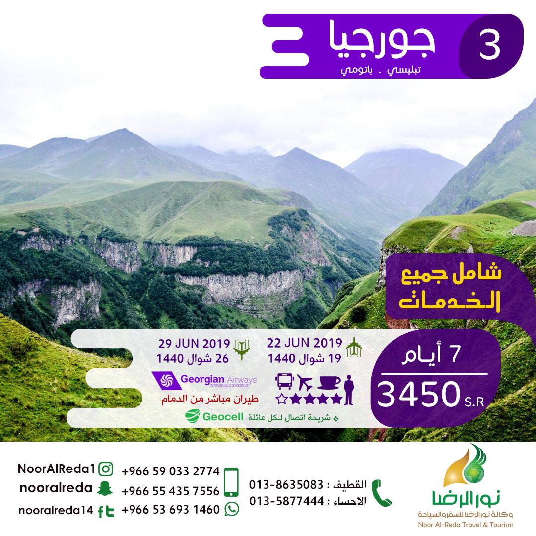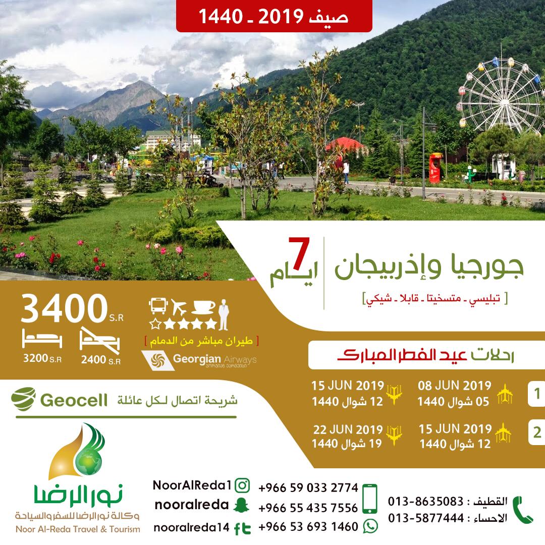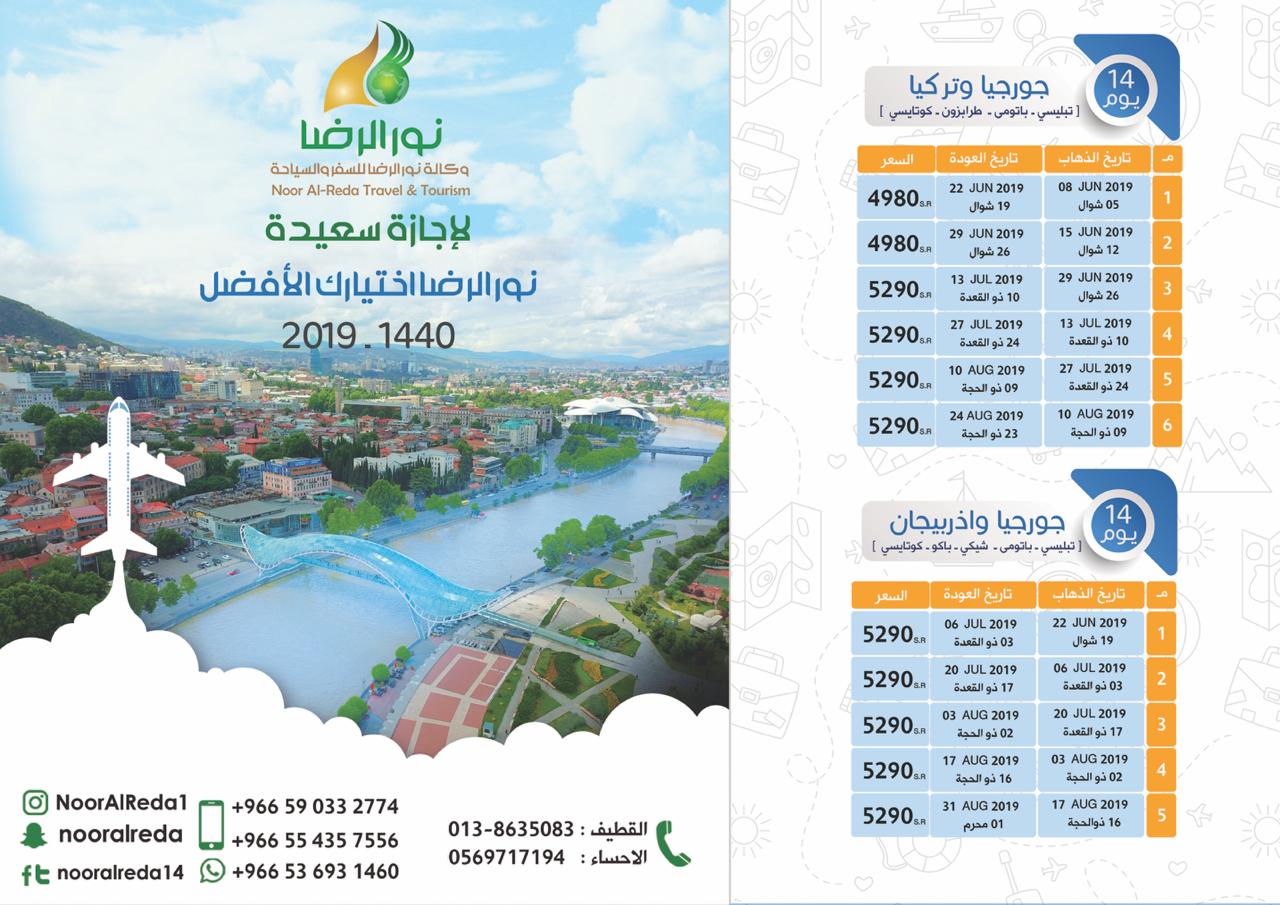 🔊 الان أقوى العروض السياحية للعيد والعطلة الصيفية من وكالة نور الرضا.. أجمل البرامج السياحية من الدمام مباشرة إلى جورجيا اكثر من 52 رحلة إلى جورجيا واذربيجان وتركيا...