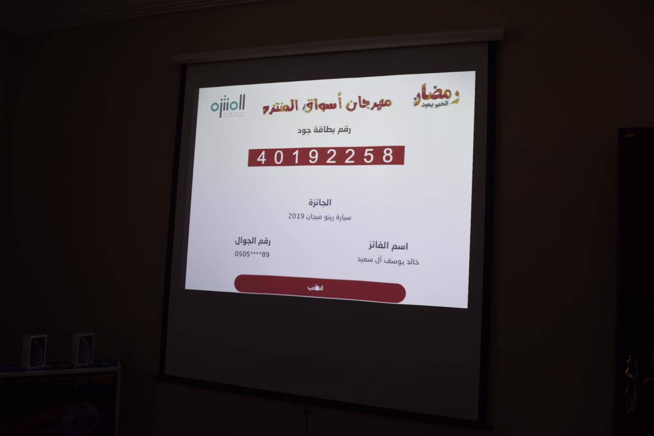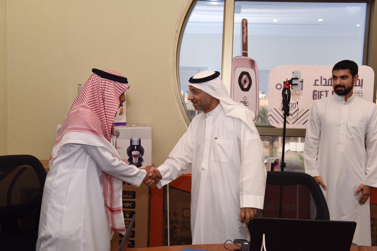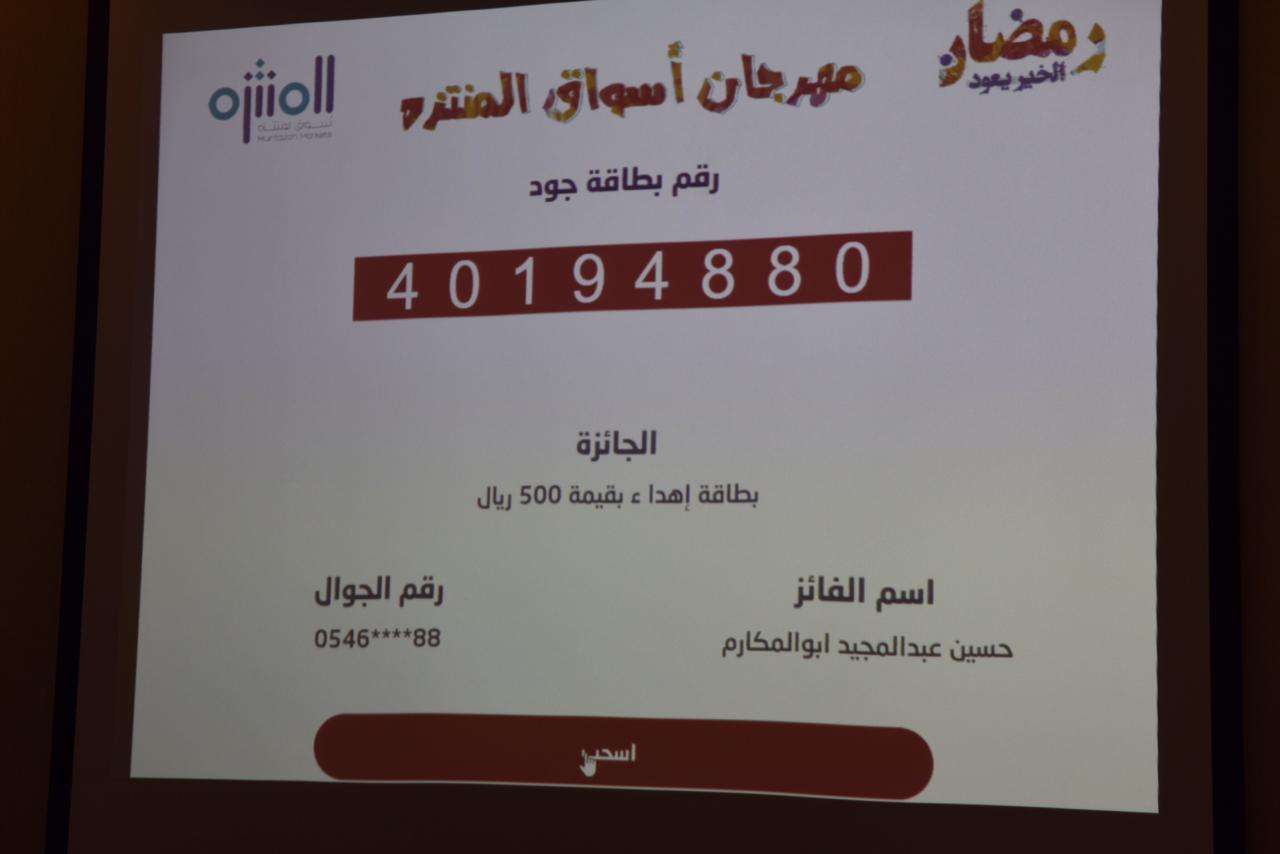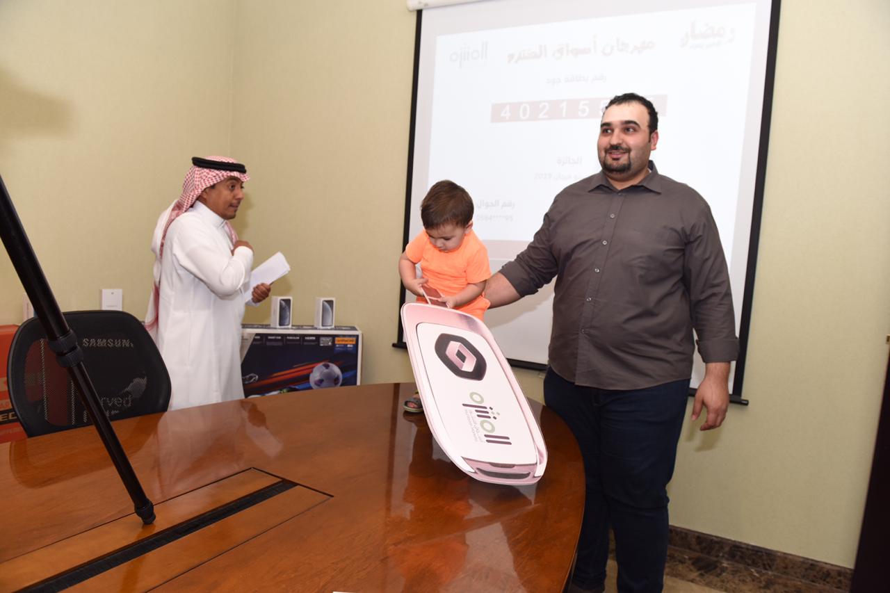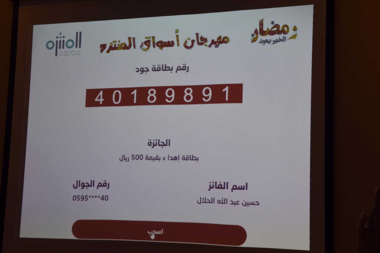وأعلن في اللقاء الذي حضره ممثل وزارة التجارة والإستثمار عن 50فائزا بعدد من الجوالات والأجهزة الأخرى بالإضافة إلى عدد من بطاقات الإهداء بقيمة 500 ريال لكل بطاقة.