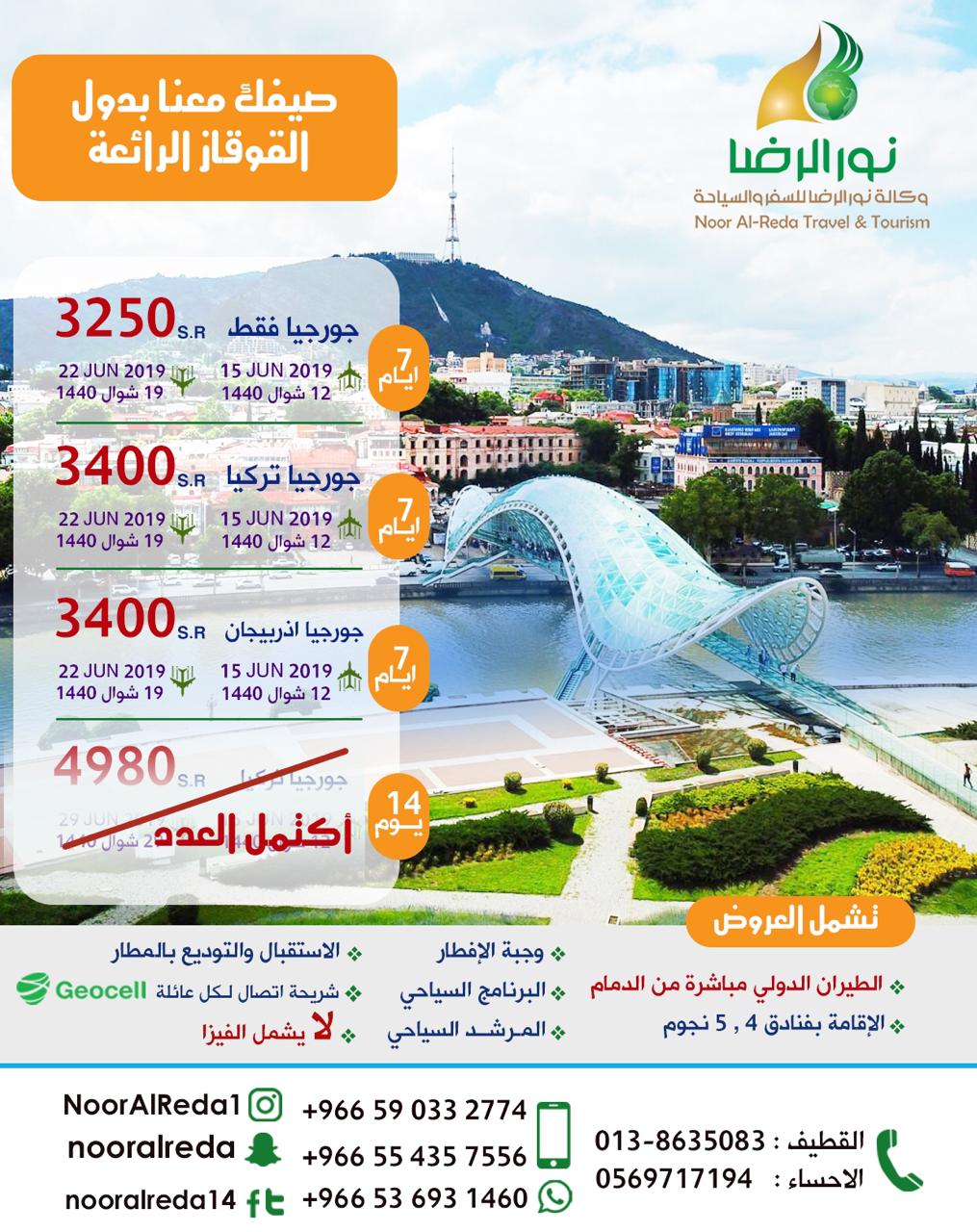 🔸 اسعار الرحلات الاسبوعيه لـ جورجيا وتركيا أو اذربيحان من: