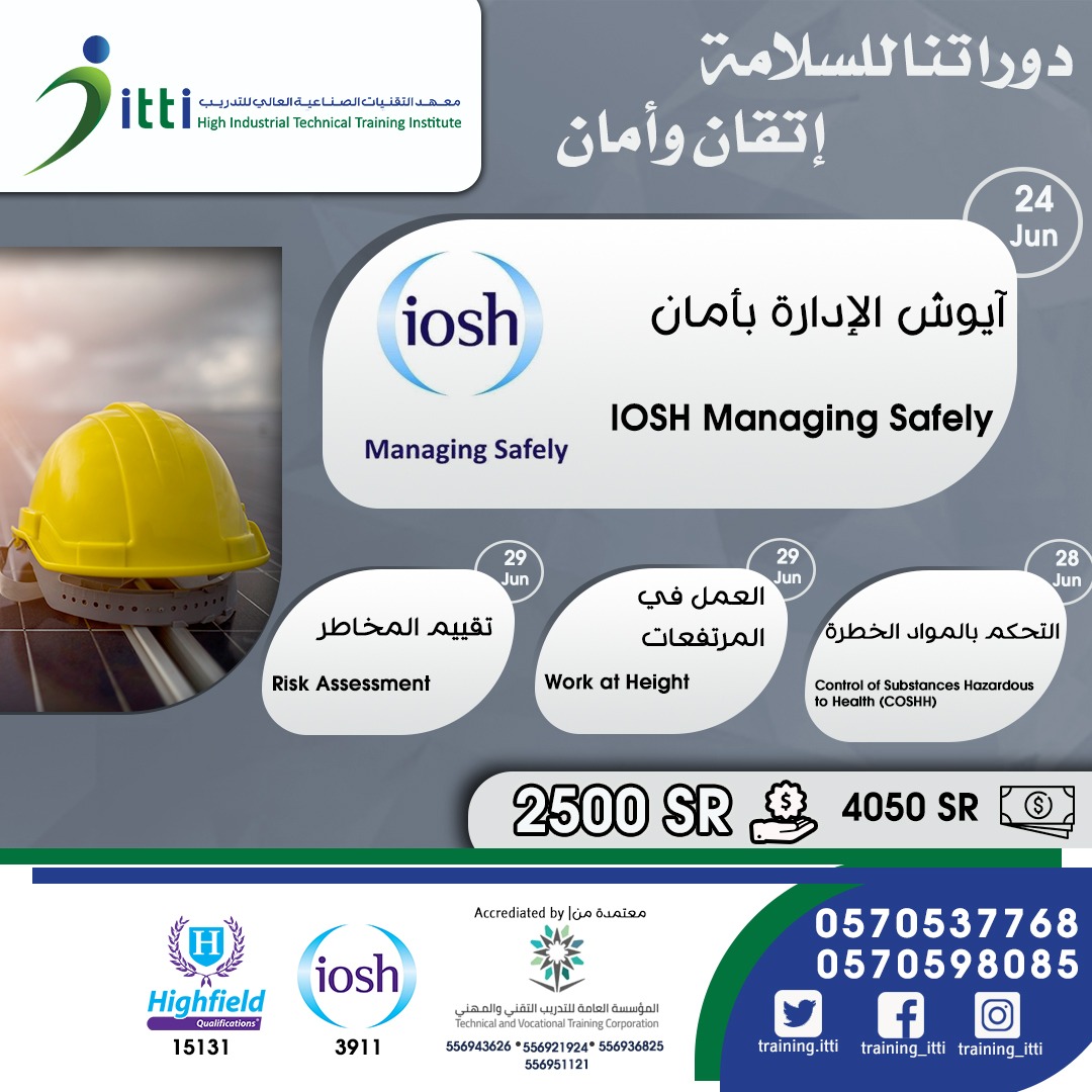 طور نفسك ومنشأتك في مجال السلامة، وتجنب المخاطر المحدقة في العمل مع دورة ”آيوش الإدارة بأمان IOSH Managing Safely“