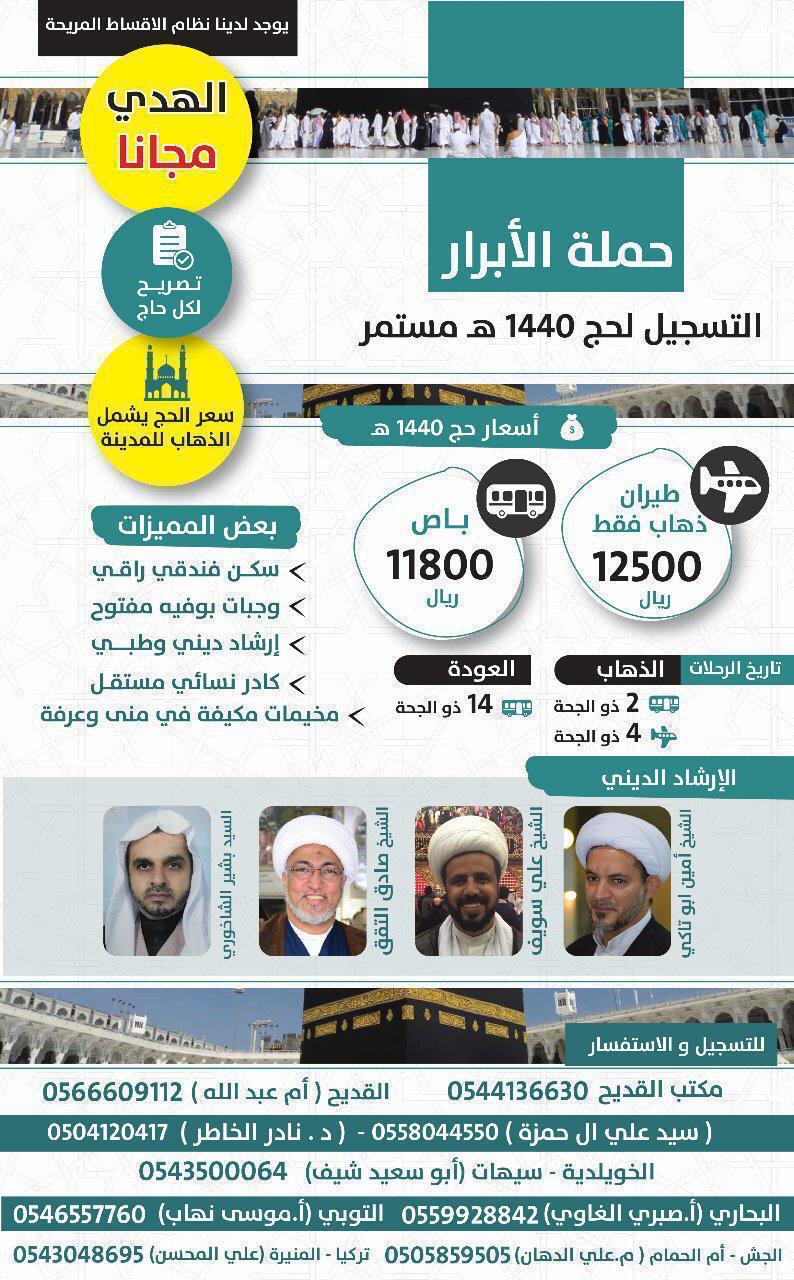 حملة الأبرار اسعارنا 11800 ريال للحج 1440