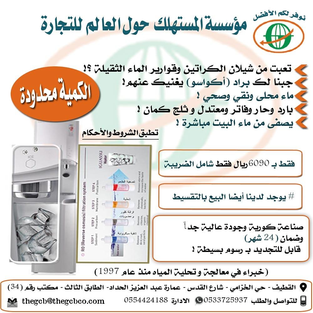 توفر لكم براد ماء يصفي وينقي الماء من ماء البيت مباشرة بدون حاجة لشراء جالونات مياه شهريا..