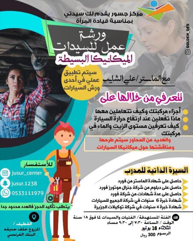 5️⃣ وللسيدات.. نصيبهن معنا في دورة ”الميكانيكا البسيطة“ والتي تقام للمرة الخامسة خلال هذا العام..