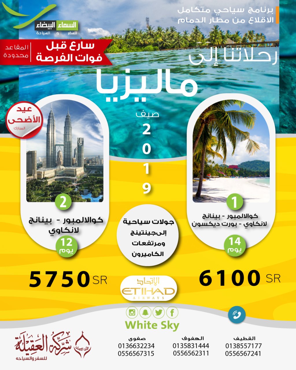 عروض الصيف وعيد الأضحى مع وكالة السماء البيضاء للسياحة والسفر