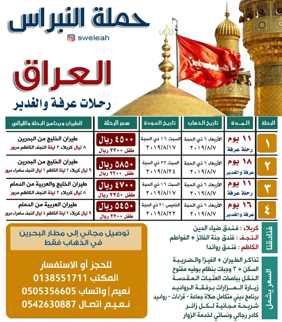 تعلن حملة النبراس عن تسيير رحلاتها للعراق عرفة والغدير